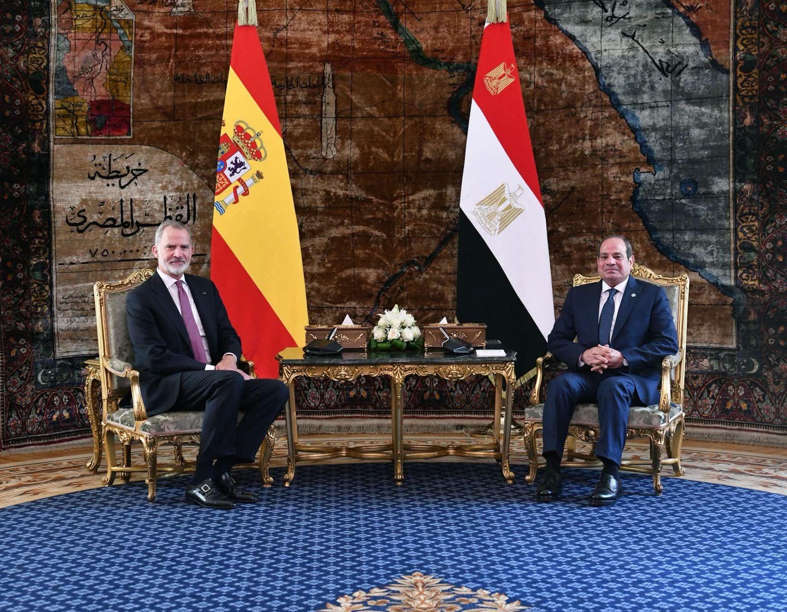 وأشار السفير محمد الشناوي، المتحدث الرسمي، إلى أن السيد الرئيس استهلّ اللقاء مع ملك أسبانيا بالترحيب به في أول زيارة دولة يُجريها إلى مصر ولأول مسؤول إسباني رفيع المستوى منذ التوقيع على إعلان ترفيع العلاقات بين البلدين إلى مستوى الشراكة الاستراتيجية خلال زيارة الرئيس إلى إسبانيا في فبراير 2025.