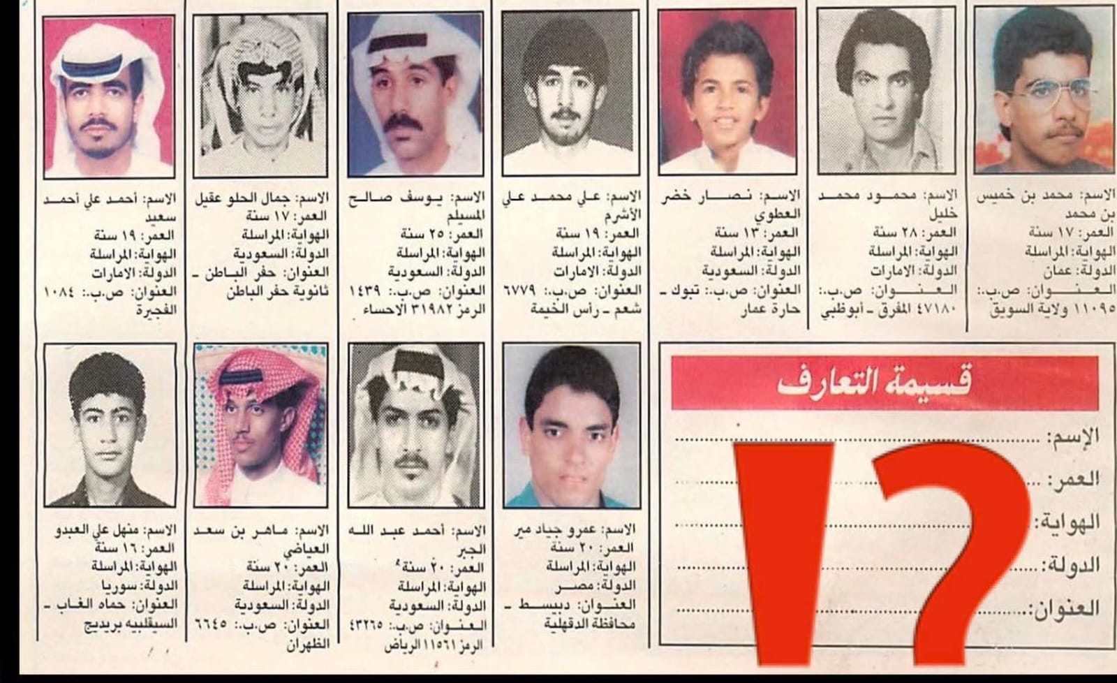 المجلات بالذات كان عليها اقبال كبير من القراء خصوصاً الرياضية منها والفنية وذلك لإسباب كثيرة لا يسعني المجال لذكرها !؟ ولكن احد تلك الاسباب صفحة شهيرة – لا تكاد تخلوا منها مجلة ( ما اعنيه بالطبع ” نادي الأصدقاء ” !! عمد الكثير من القراء من خلال هذه الصفحة بدافع الفضاوة وشغف الكتابة الى البحث عن اصدقاء من الوطن العربي ..