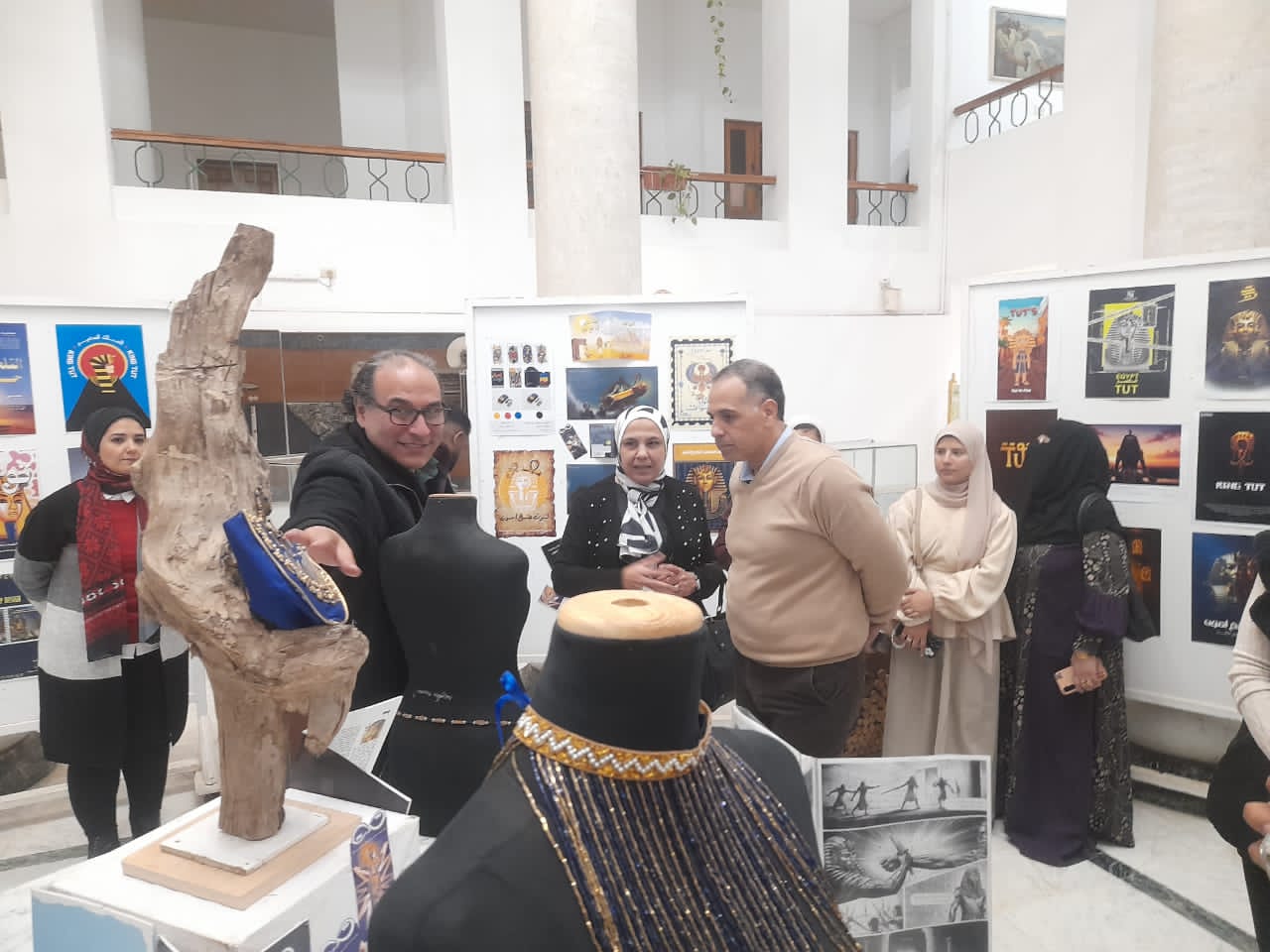 وقد شارك في المعرض طلاب الفرقة الرابعة بجميع الأقسام ضمن مقرر علم الجمال للعام الدراسي 2025/2026؛ حيث قدموا مجموعة متنوعة من الأعمال التي تجمع بين الأصالة والمعاصرة. وتتجلى في اللوحات والأعمال المشاركة رموزٌ مستوحاة من الحضارة المصرية القديمة، وفي مقدمتها شخصية الملك توت عنخ آمون، الذي لا يزال يمثل رمزًا خالدًا للتجدد والجمال والتأثير الحضاري على مر العصور، وتنبض الأعمال المقدَّمة بروح الإبداع من خلال استخدام الطلاب لأساليب فنية متعددة، تمزج بين التعبير التشكيلي الحديث وعناصر الفن الفرعوني، مما يبرز قدرة الجيل الجديد على إعادة قراءة التاريخ من منظور بصري معاصر. كما تُظهر الأعمال مدى استيعابهم لمفاهيم علم الجمال التي درسوها، وترجمتها إلى أعمال تتناول العلاقة بين الهوية والتراث والخلود، وهي ثيمات لطالما شكّلت أساسًا للفن المصري منذ آلاف السنين.