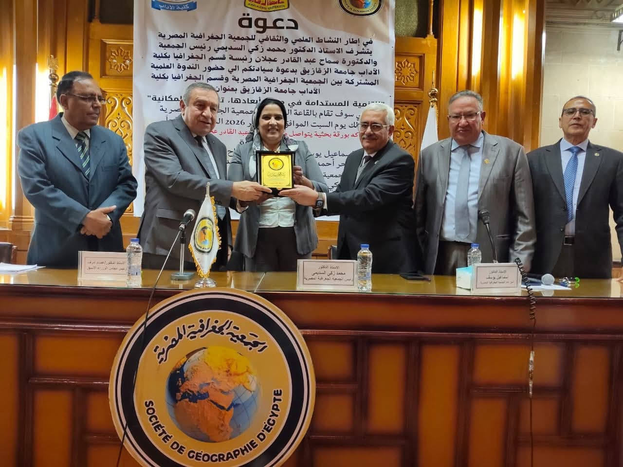 في إطار التزامها بدعم البحث العلمي وربط مخرجاته بالقضايا الوطنية ذات الأولوية، شاركت جامعة الزقازيق، ممثَّلة في قسم الجغرافيا بكلية الآداب، في الندوة العلمية التي نظمتها الجمعية الجغرافية المصرية بعنوان «التنمية المستدامة في مصر: أبعادها وتقنياتها المكانية»، وذلك بالقاعة الملكية بمقر الجمعية.