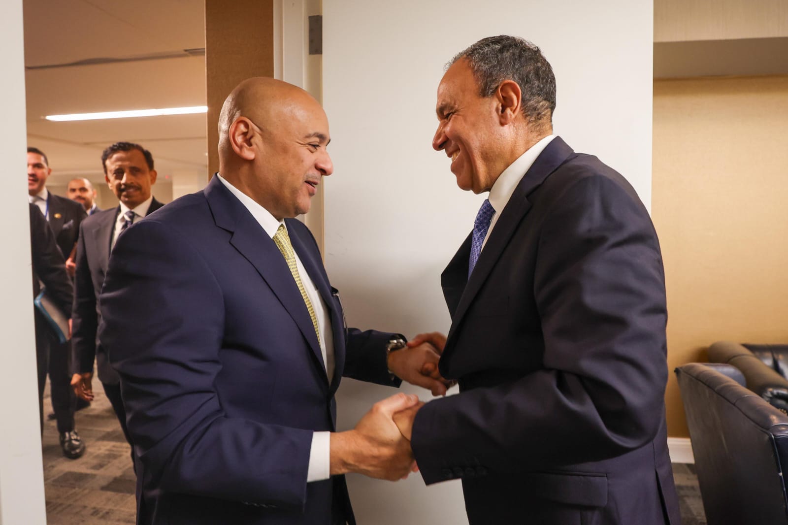 التقى معالي الأستاذ جاسم محمد البديوي، الأمين العام لمجلس التعاون لدول الخليج العربية، بمعالي الدكتور بدر عبد العاطي، وزير الخارجية والهجرة وشؤون المصريين بالخارج في جمهورية مصر العربية، اليوم الأحد الموافق 21 سبتمبر 2025م، وذلك على هامش مشاركة معاليه في اجتماعات الدورة الثمانين للجمعية العامة للأمم المتحدة في الولايات المتحدة الأمريكية بنيويورك.